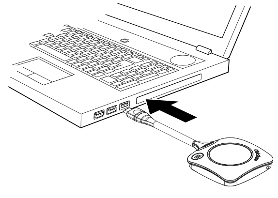 Step 1: Take a Button and Insert the Button into a USB port of your laptop. Depending on the USB port on your laptop and/or on the USB connector of the Button, a convertor may be needed.